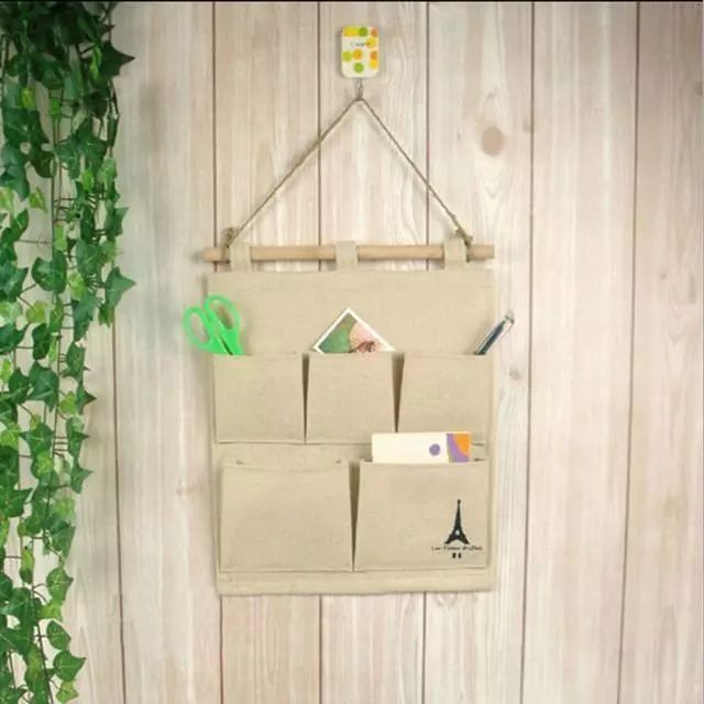 随意挂置,门后、墙壁等,多口袋设计,遥控器、梳子、钥匙等各种小物件都好收纳。