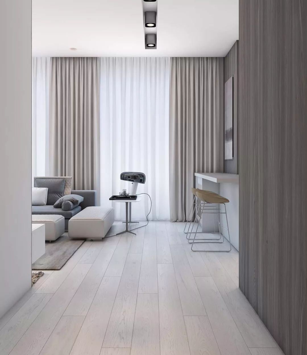 选地板这件事和熬汤底一样地板是家居的底色如果把进门的第一眼比作一幅画地板和墙面的颜色决定了色调家具的线条和其他软装细节决定了风格你是要山水画还是小清新?从选地板开始光线不好的小户型妥妥上浅色,花纹少,最好是高光材质的地板这种地板是小户型的救星最稳妥的选择是花纹尽可能少的淡黄色如果你家光线不好,记得