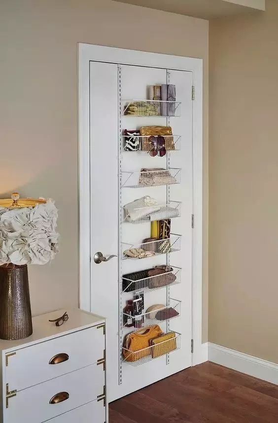 一扇门后的置物架,可以让你家就像多出了一个储物间,各种杂物都可以放在这里,显示纸巾、杯子、玩具等等。