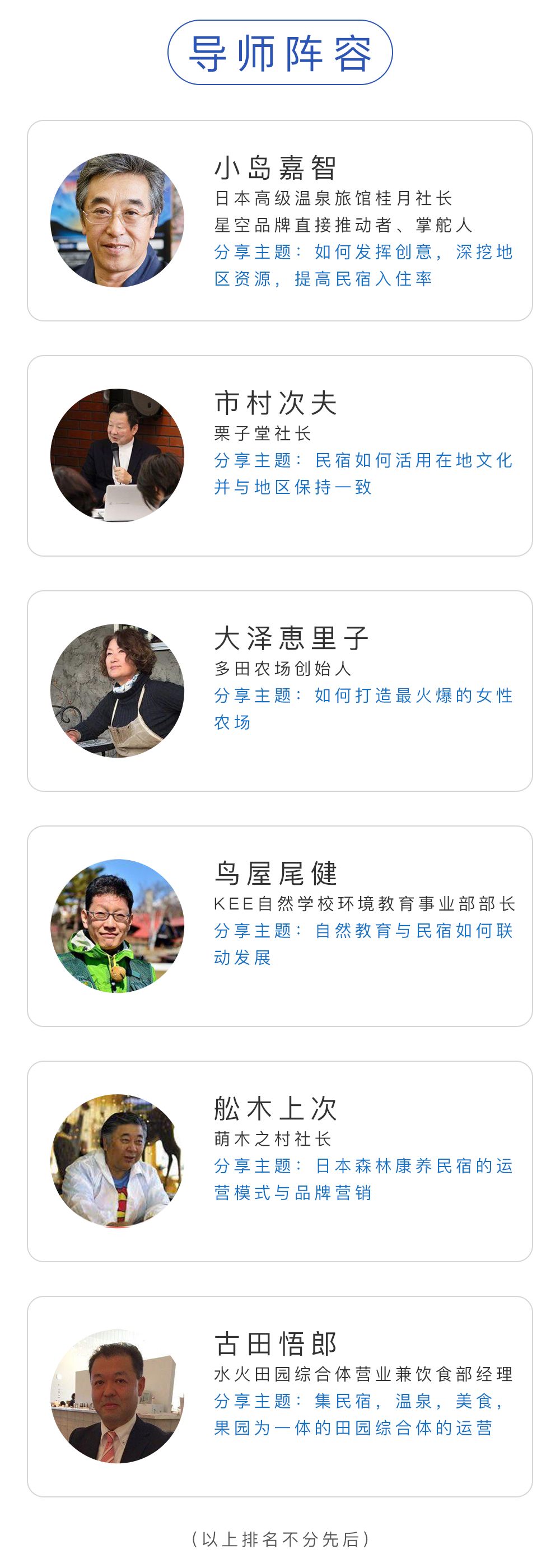 日本村落品牌打造者,民宿经营者,地产开发商,乡村精品酒店设计师,专业讲师,农场经营者,传统文艺保存者,6位权威专家深入分享讲解,了解吸取国际经验做法和实践教训;