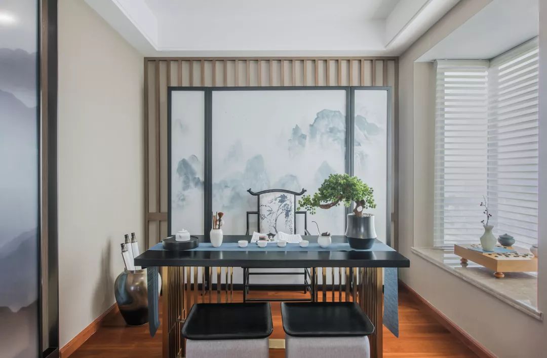 ▲用膳空间及书房沿用古色古香的中式元素和简单素雅的现代线条自然衔接,设计上令空间的现代气息与东方韵味共存且维持平衡,打造质感十足的室内氛围。