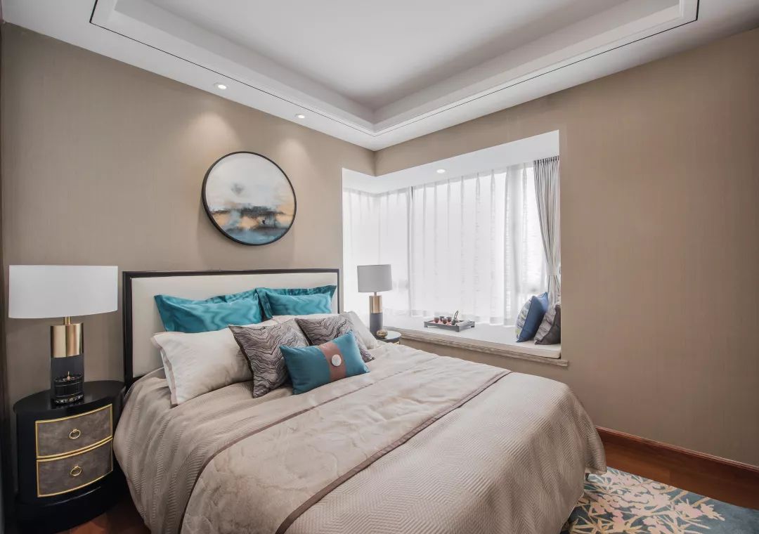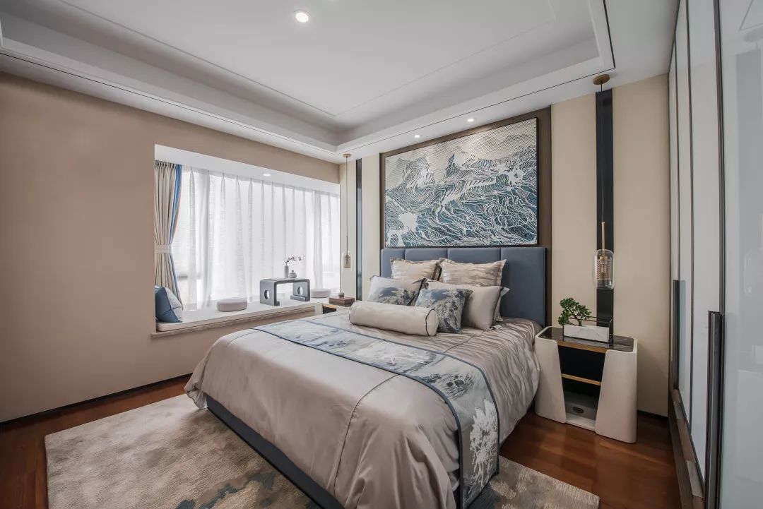 ▲卧室设计上,将自然山水的景色引入空间,在现代生活的环境中结合东方美学底蕴,令空间居住者自然代入“物象因视觉成景。