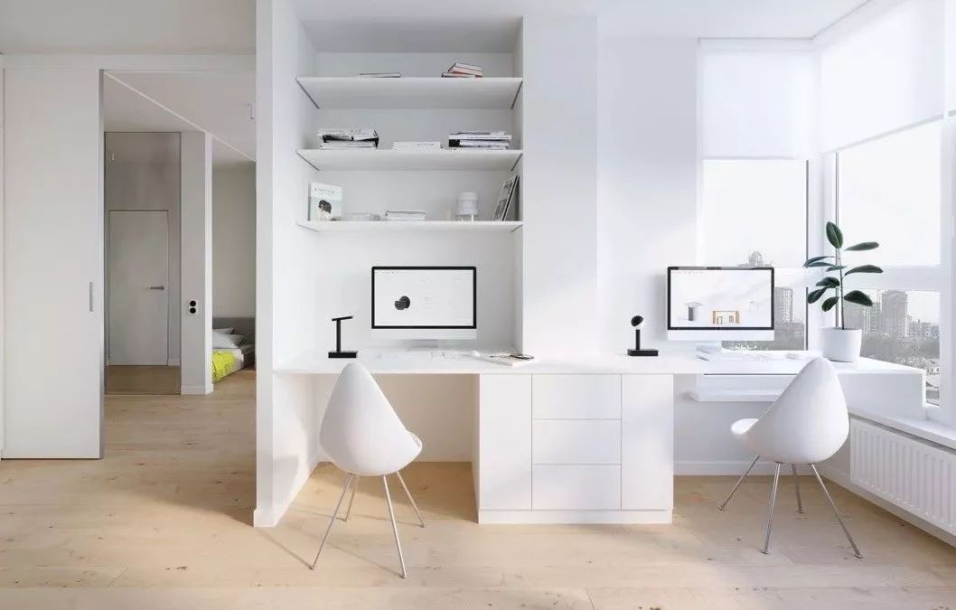 如今,家庭办公区就像用餐区一样,也是生活的一部分。事实上,在寸土寸金的城市中,没必要单独开辟出一间书房。家里几乎任何区域都可以定制出一个舒适、轻松的读书环境。