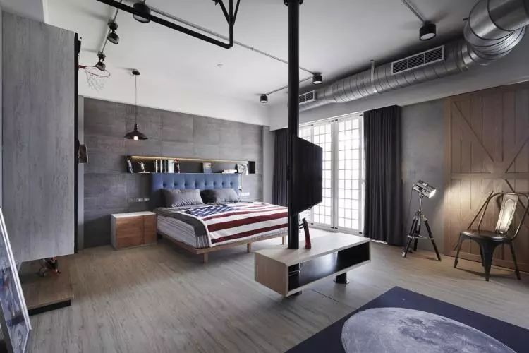 不喜欢太多家具摆设的你,能尝试从电视柜来凸显卧室中的主题,同时也能分割出睡觉与自己的休閒场域。