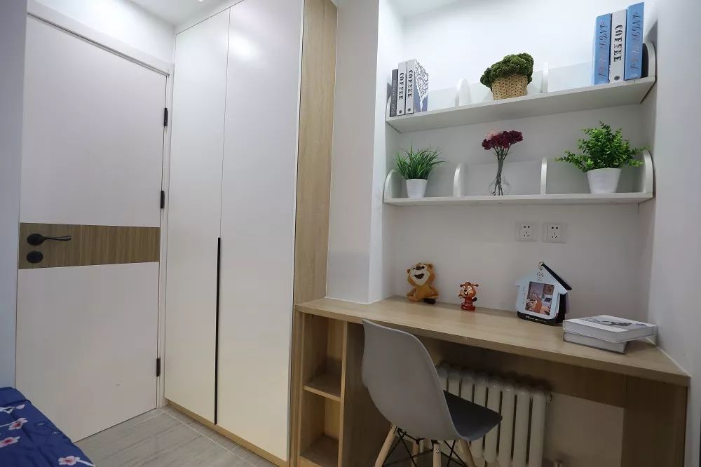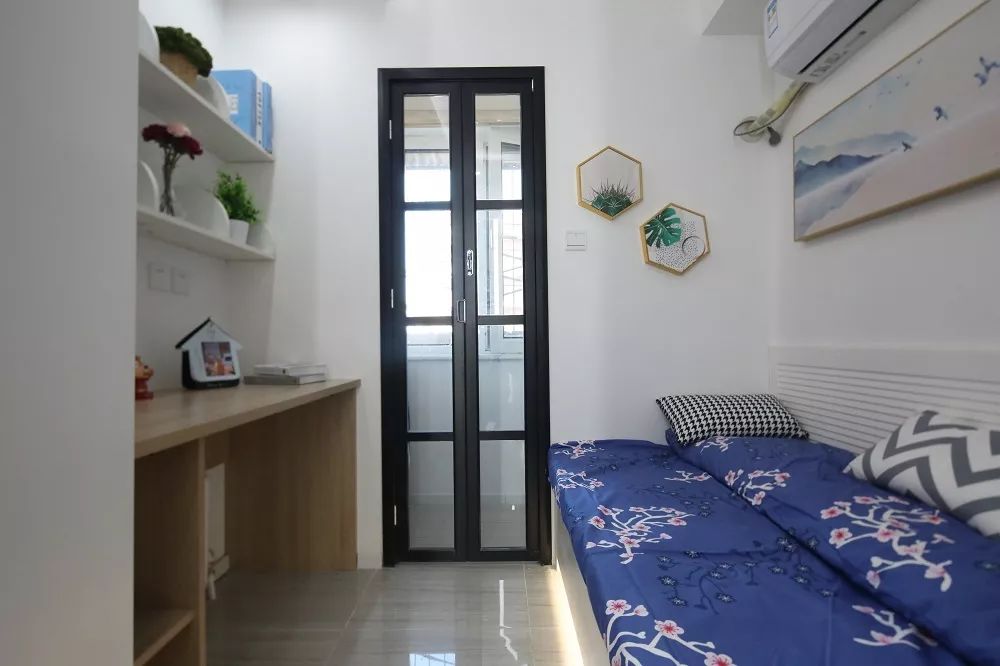 以前的厨房,如今被改造成了马老太太的卧室,单人床、大衣柜、写字台,一应俱全,老人房拥有了大量的储物空间,丝毫看不出原来厨房的任何痕迹。