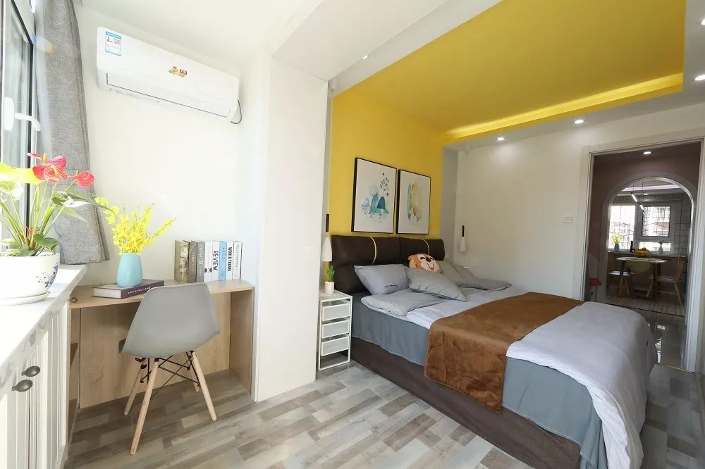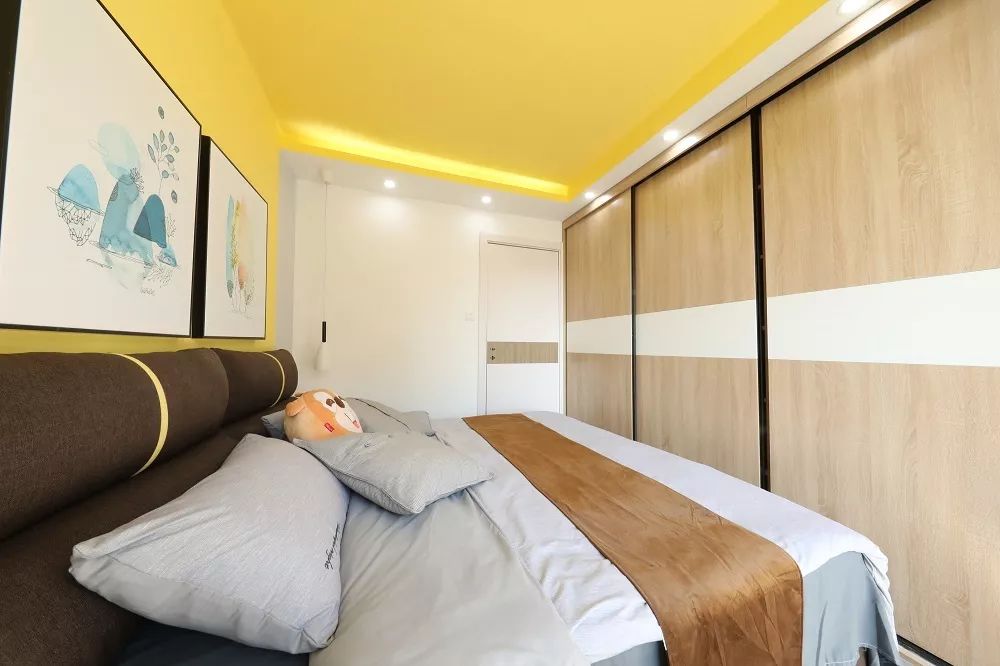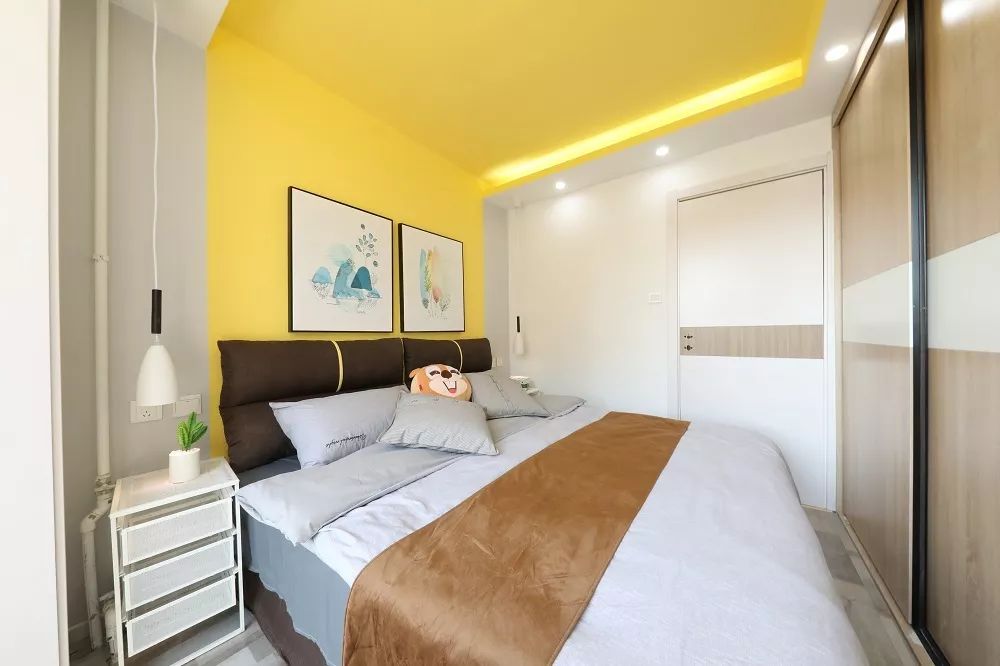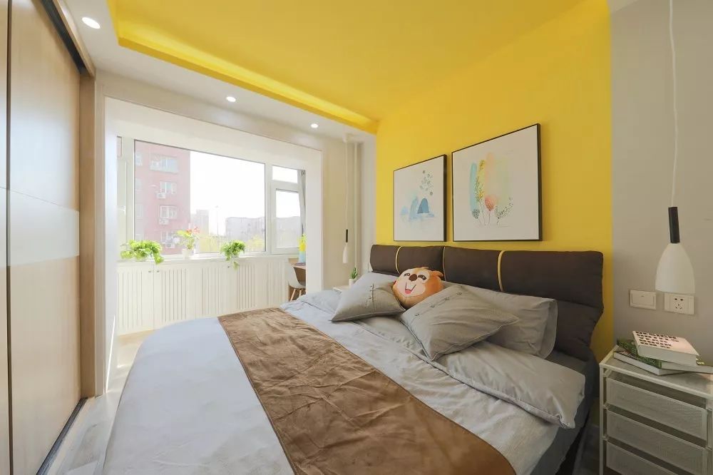 卧室的墙面采用了油菜花色的涂料,为整个空间增添了生机与活力。