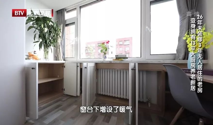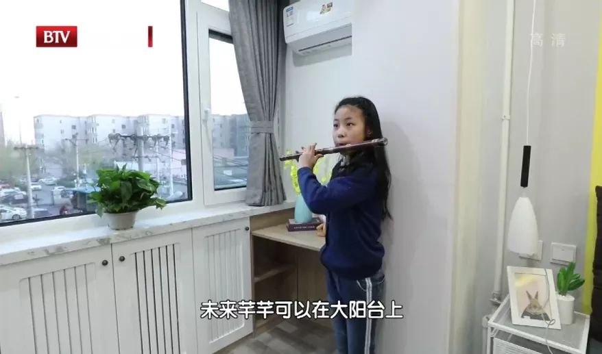 阳台两侧增加了写字桌和柜子,摆放上绿植让空间更加多了一份生机。阳台的窗台下增设了暖气,即便在寒冷的冬日,整个卧室也不会感到严寒了。未来,芊芊也可以在大阳台上吹笛子了。