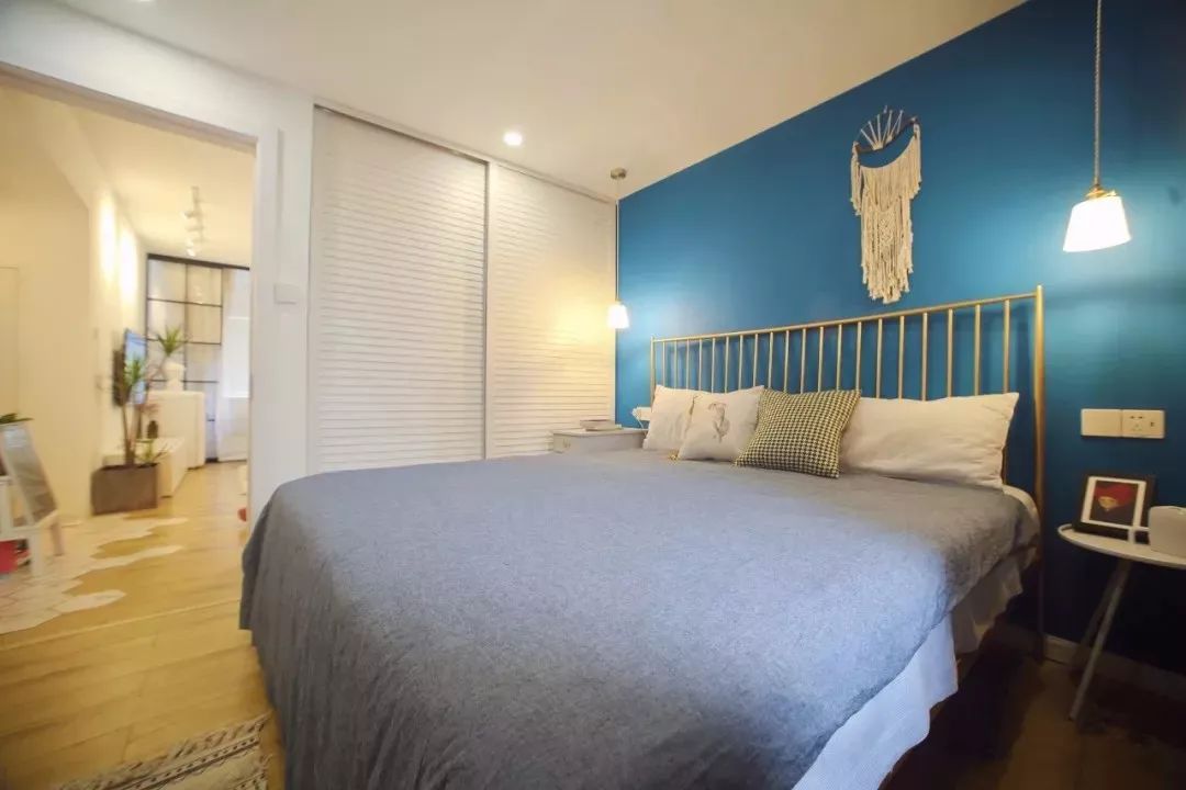 暖黄的灯光,让整个卧室变得十分温馨舒适,利用一些收纳小物件,整齐干净,节省多多空间。