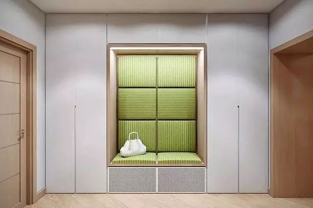 如果鞋子很多,首先要考虑顶天立地式的嵌入式壁柜,不仅可以用来收纳鞋子、外出穿的衣服,还可以加入换鞋凳、景观台等,功能非常强大。
