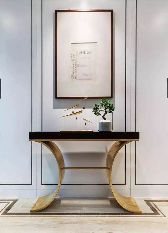 千万不要小看简单的一个桌子,这可是营造空间氛围的利器。低调又简约,搭配盆栽、挂画,还能营造意境,放在进门正对的墙面处再合适不过!
