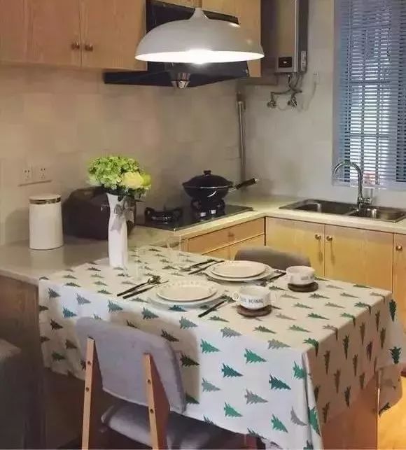 即便餐桌在厨房,一块小桌布也能让格调变得不一样。