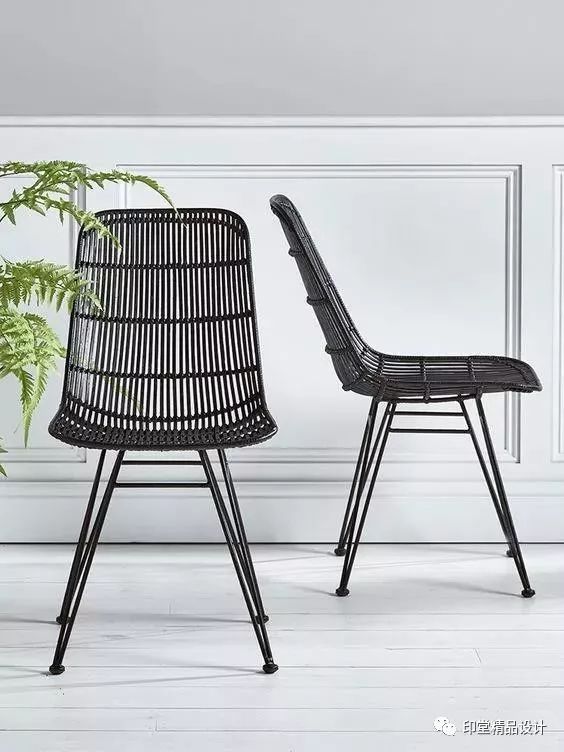 现代工业不仅在制造上提升了藤椅的耐久性,也使藤椅在造型方面有了更多可能。通过将藤编座面和牢固、挺拔的金属椅脚相结合,可以形成色相和材料质感的强烈对比;而备受设计师青睐的黑色线条,也能赋予藤椅一种整饬精致的气质。