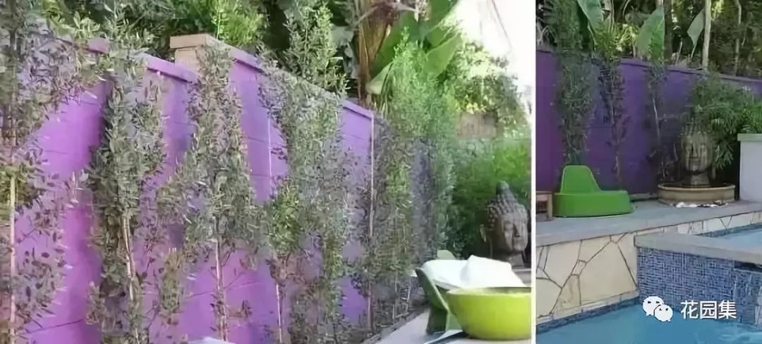 意大利沙棘,这种灌木生长速度极快,并且垂直生长,是做篱笆的理想植物。很高并且密度不是很大,可以装饰一些彩色的墙面,不需要全部覆盖。透过这些植物,可以隐约的看到墙面的颜色。