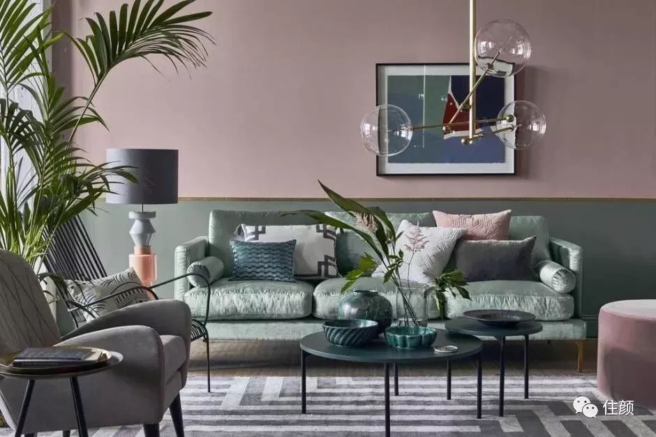 半墙也是近几年家居圈的潮流之一,之前颜姐也曾有分享:,无论是单纯的拼色还是加石膏线的设计,都能让墙面和空间实现整体统一的视觉效果,要是和装饰物有颜色的呼应效果会更突出。