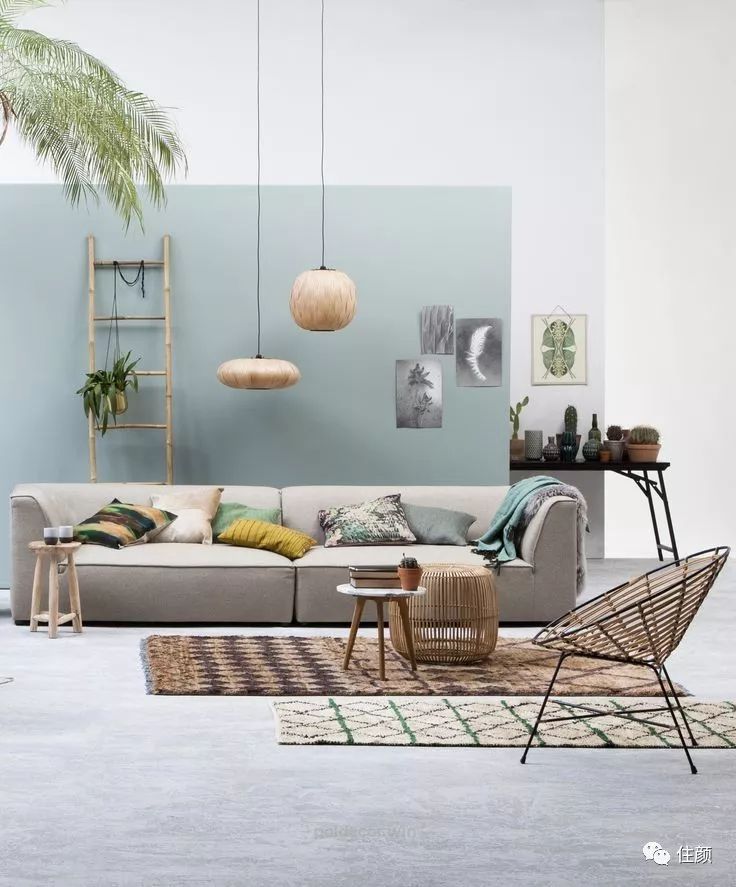 除了常规的靠墙放置,很多人开始给沙发一个“新形象”,划分区域、或者是用植物做背景,提供了更多可能性的同时,也让规划变得更有意思。