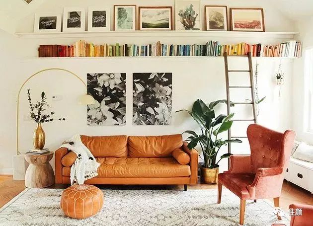 也可以做成搁板墙,书籍、装饰画、绿植类都可以放在这儿,伸手就能拿到,阅读的时间也不会遥遥无期了。