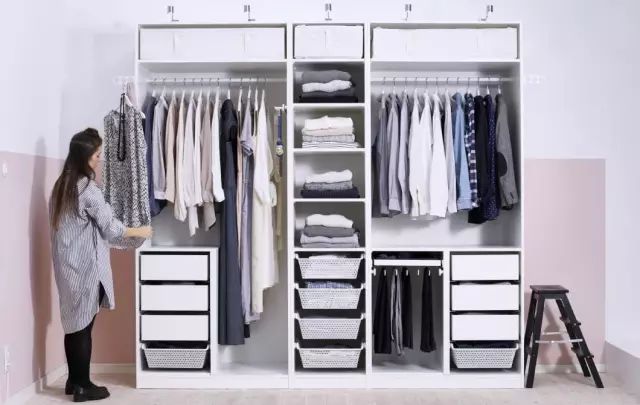 我们之前已经说了,要把衣柜的内部功能区给设计好,那么现在就很轻松啦,只要按照你规划好的分区,把衣服给分配好,如果你就是爱乱放,那就没辙了~怎样都拯救不了~