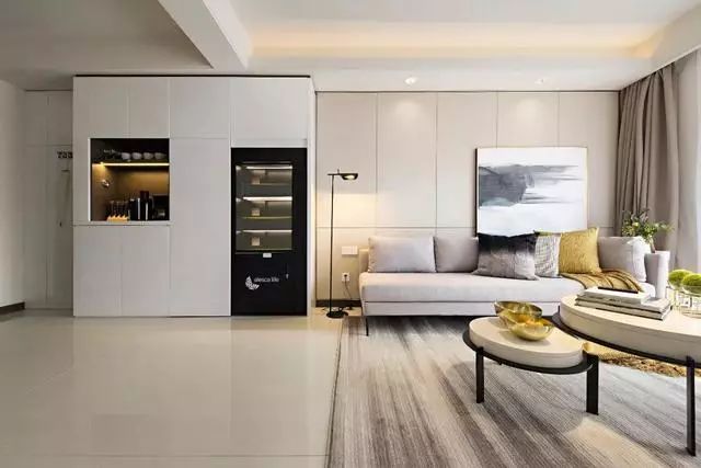 入门玄关柜功能:咖啡水吧台功能,鞋柜收纳,杯具餐具收纳、酒柜收纳、衣物收纳。