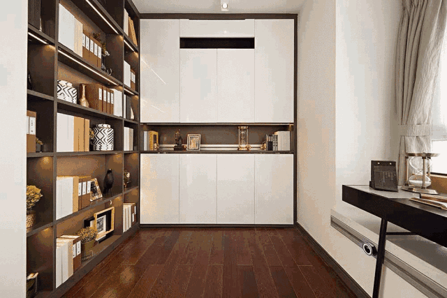 灵活运用窗台空间,可移动定制书桌,伸缩自如。超强书房收纳空间,满足爱看书的你,懂生活!