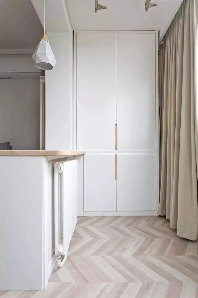 主卧的阳台以矮墙隔断,两侧装上暖气片,这个半开放式的阳台装成晾晒空间,为小房子提供了实用的设计。