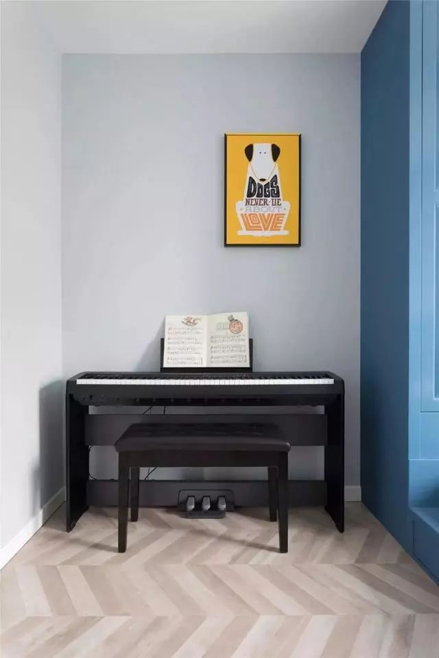活动区一侧角落刚好布置了一台钢琴,小小的空间显得安静而实用精致。