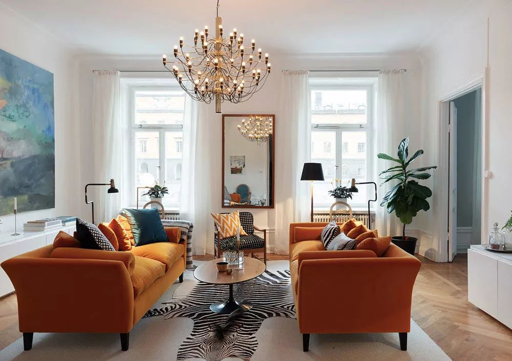 微信又改版了,不想错过我们的内容?1、点击上方“室优嘉兰”2、在账号页,点击右上角的“...”3、在弹出菜单中,选择“设为星标”ヽ(*^ー^)人(^ー^*)ノ这样就不会找不到我们啦//斯德哥尔摩这间优雅的公寓拥有极佳的色彩,打造出明亮和活力。客厅里有两个橙色的沙发,墙上挂着巨大的画作,还有一个鲜红