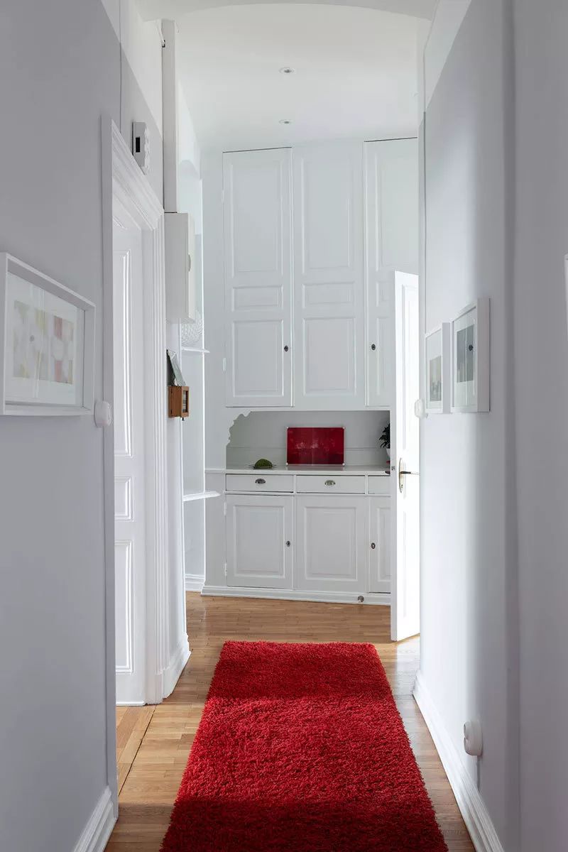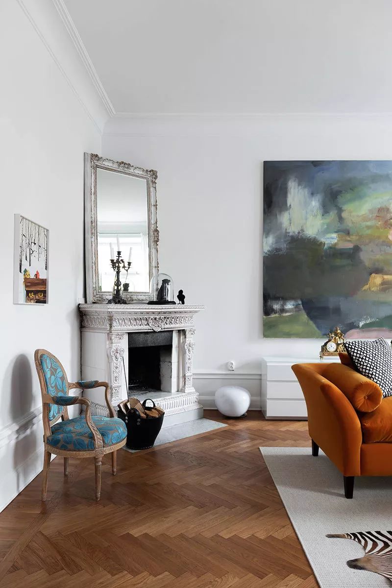 斯德哥尔摩这间优雅的公寓拥有极佳的色彩,打造出明亮和活力。客厅里有两个橙色的沙发,墙上挂着巨大的画作,还有一个鲜红色柜子 - 设计师颜色使用得恰到好处,没有使用太多来填充室内,但增加了几个很酷的亮点。值得注意的是,公寓位于斯德哥尔摩市中心许多美丽的古老建筑之一,拥有令人印象深刻的经典入口。