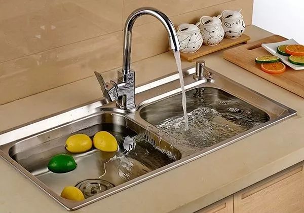 如果有条件,家里一定要备两个水槽,一大一小,洗碗和洗菜,可以兼用。同时还要有可旋转的水龙头,能服务两个水盆。