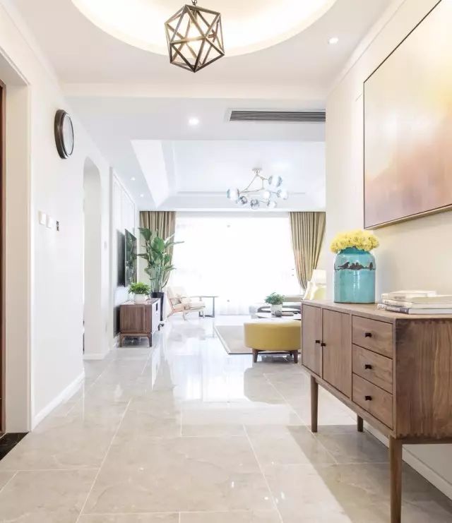 关注微信公众号:jia-fszx,每天和您分享软装搭配技巧、各种风格户型的装修案例、搭配设计知识等!丨玄 关丨▲很有质地的斗柜和朦胧的装饰画,丰富了空间装饰。地面铺设了富有质地的瓷砖,提升了空间亮度。▲唯美的画面感丨客 厅丨▲走进客厅就来到了一个特别光亮的空间,仿佛拥有一道流星划过的美丽。▲光影映