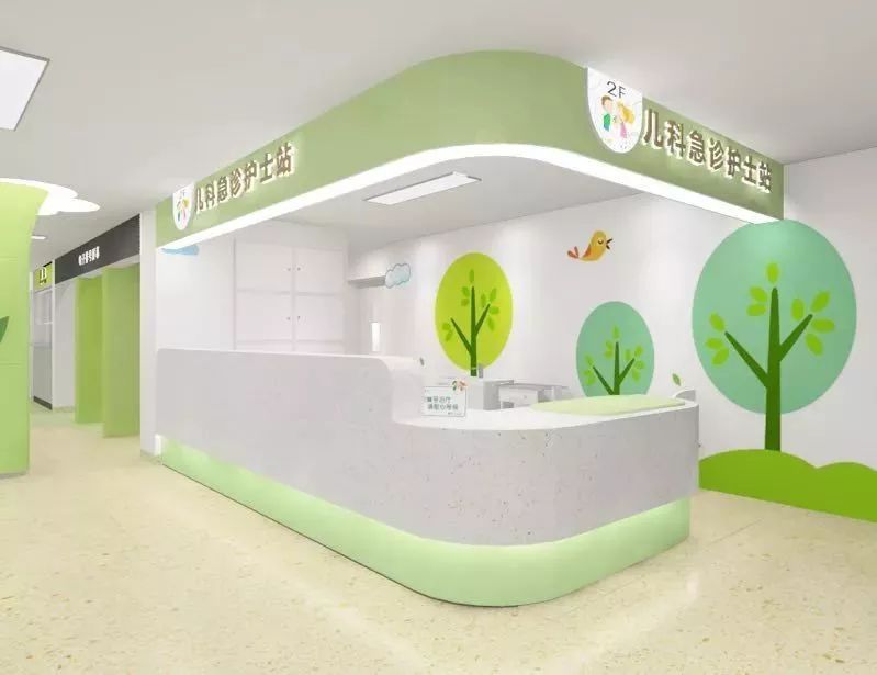 索菲亚工程承接儿童就诊区的护士台、尿包台、沙发、输液椅等多品类产品,从安全、环保、防潮、易清洁、童趣化等全方位考虑出发,色调上清新活泼,细节上运用圆角与软包材质保证安全,营造“家”的温馨感觉,安抚孩童就诊时的紧张情绪。