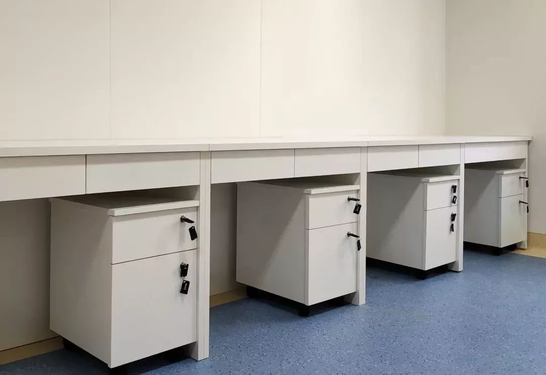 医护人员所使用的护士台、办公桌、资料柜等,以存放资料文件为主,分区明确,且都带抽屉门锁设计。