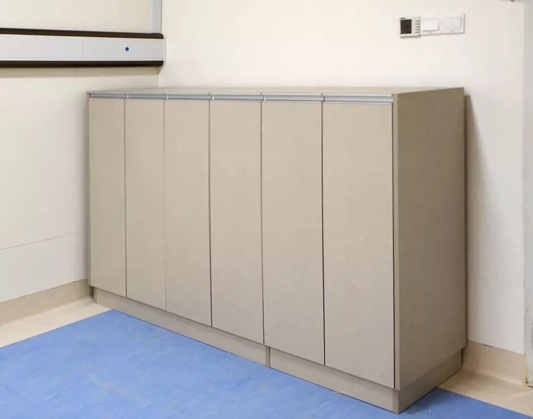 选用索菲亚浅色布纹板,颜色舒服,利于安神,营造一个静谧的康复环境。在进行产品深化设计时,格外注重柜体细节,设计师多次在现场实地测量,以满足患者需求、满足医务人员需求、体现以人为本的服务功能为最大目标。