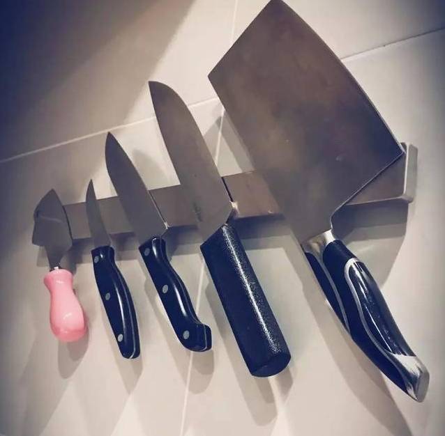 还有这款,专门为刀具设计的磁性刀架,这样拿刀就方便多了,不过要注意位置,不要一不小心割到手了就是。
