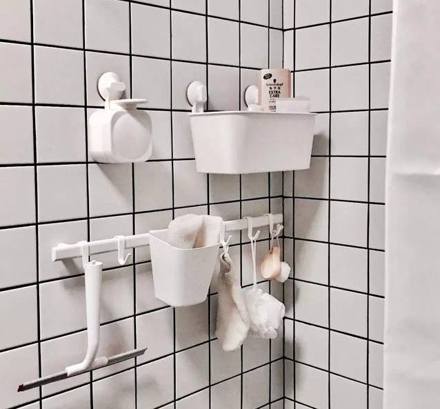 首先就是我们最常见的吸盘置物架,不管是在淋浴间里放洗澡用的,还是在洗手台边放洗漱用的,都非常的实用。