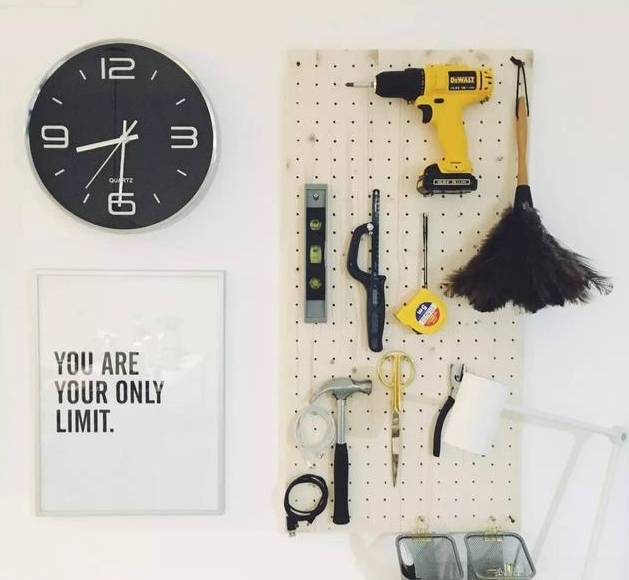 最值得一说的就是洞洞板,每个用过的业主都会说,洞洞板真的是万能的!不管是工具合适杂物,甚至是绿植等,都可以挂在洞洞板上。