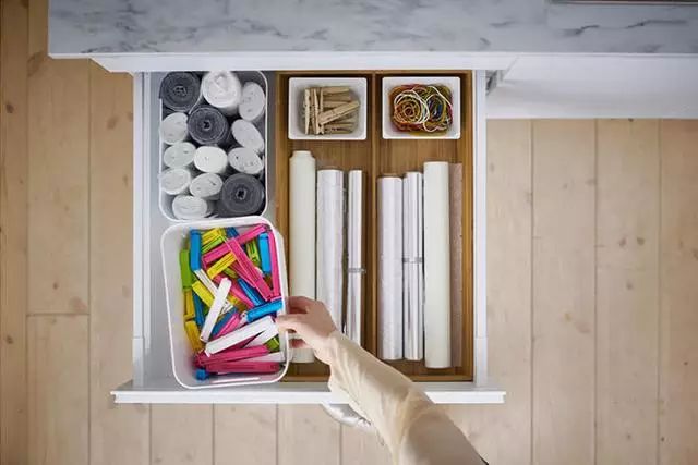 相信还有很多的小物件,大家是放在抽屉里的,那么抽屉里又要用什么来整理?买个抽屉整理盒或者分隔板吧!分门别类的放好,就不会乱啦。