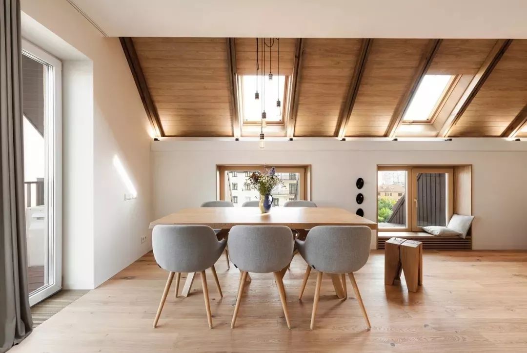 阁楼餐厅在家庭风格的基础上,巧妙的利用不规则空间,融入主人喜欢的餐厅风格定位,就能令其以一种姿态焕然一新。