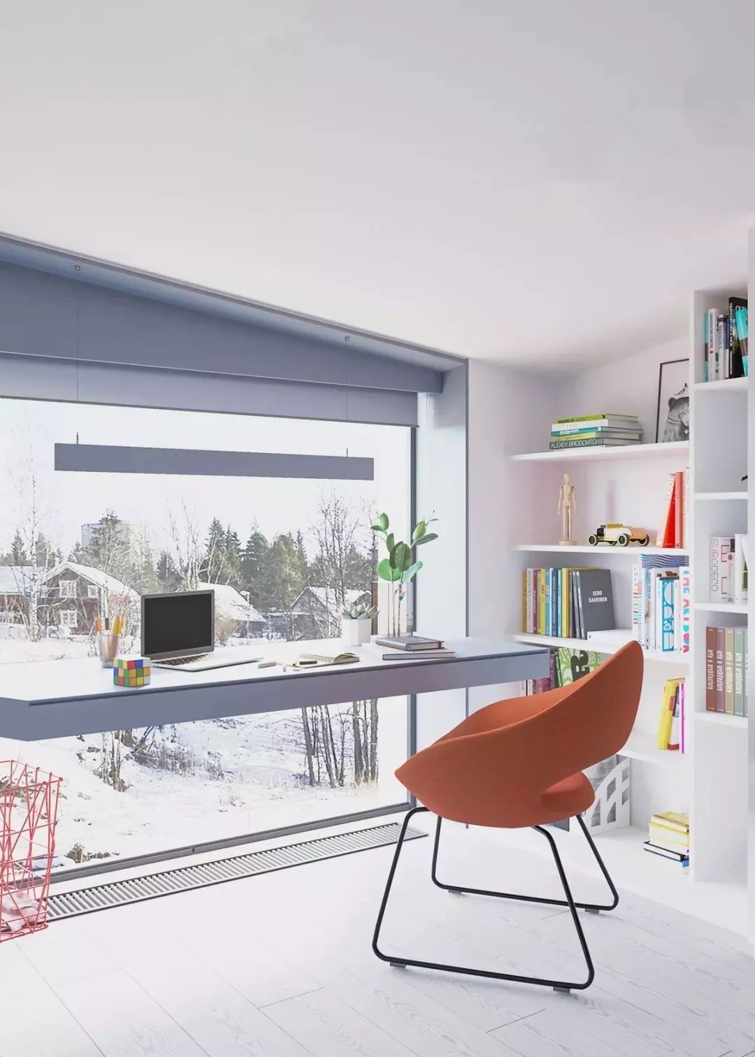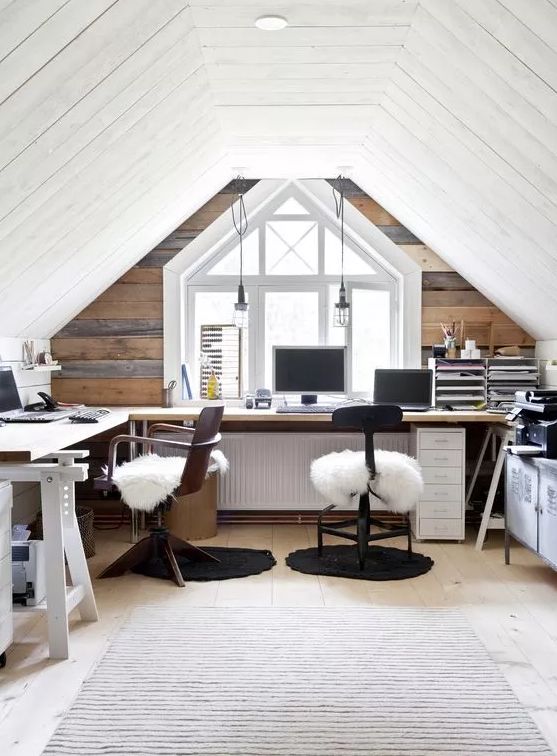 阁楼虽然不规整,但是幽静安宁,作为家中的书房,也是非常合适的。开阔的地方摆放上书桌椅,一边享受阳光,一边工作也是件浪漫的事。