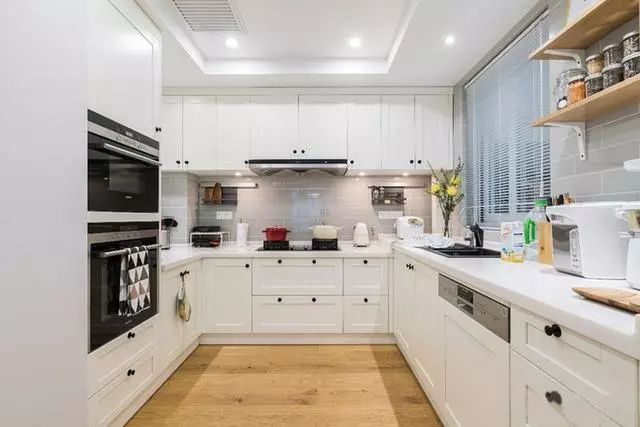 下面我们再来看一套128平北欧三居室,设计师很好的将现代风格和北欧风格 相融合,使得整个居所既具有现代时尚感,同时还非常的简约、舒适,尤其是一个大大的U型厨房好看又实用!下面一起来感受一下吧!