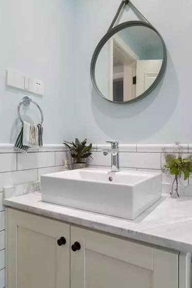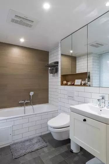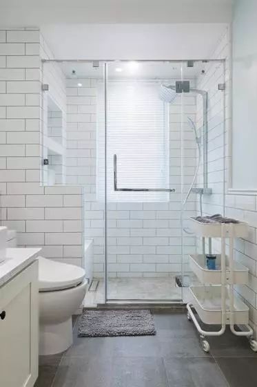 整洁、干净、清爽的卫生间,淋浴房还做了壁龛收纳设计~