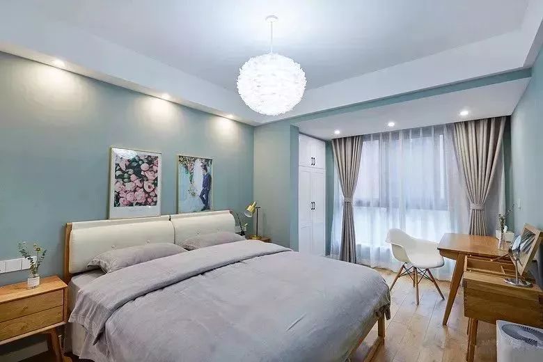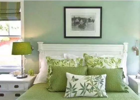 这个颜色用在卧室里可以缓解视疲劳,舒缓眼睛的疲惫。浅浅的青草绿,视觉感也是非常清新自然的。