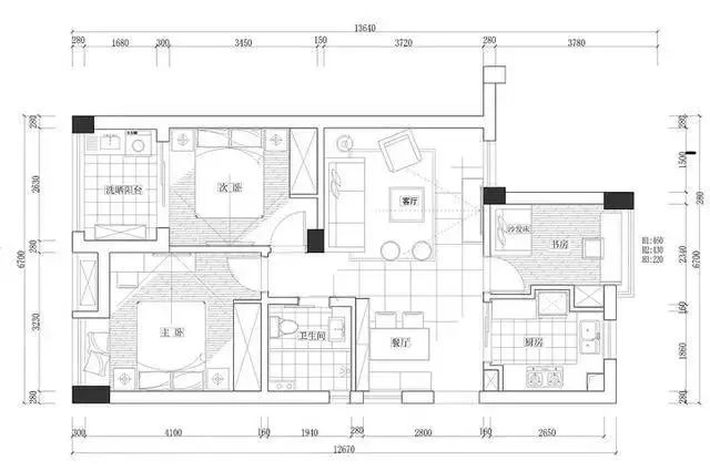 厨房暂时开放,留好了门套以后可能会加推拉门