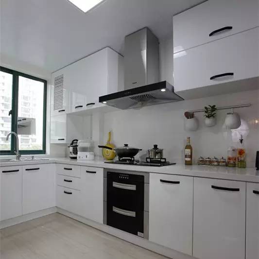 收纳功能强大的L型橱柜,让厨房功能齐备而便利。