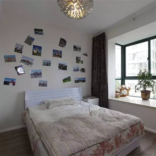 舒适整洁的青少年房,动感吊灯、飘窗的布偶、照片墙等都展示着成长中的幸福与快乐。
