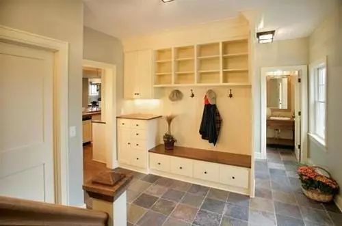 为了合理的利用空间,人们会在玄关处设计鞋柜、衣帽柜等,这样可以增强实用性,达到实用、装饰相辅相成的效果。