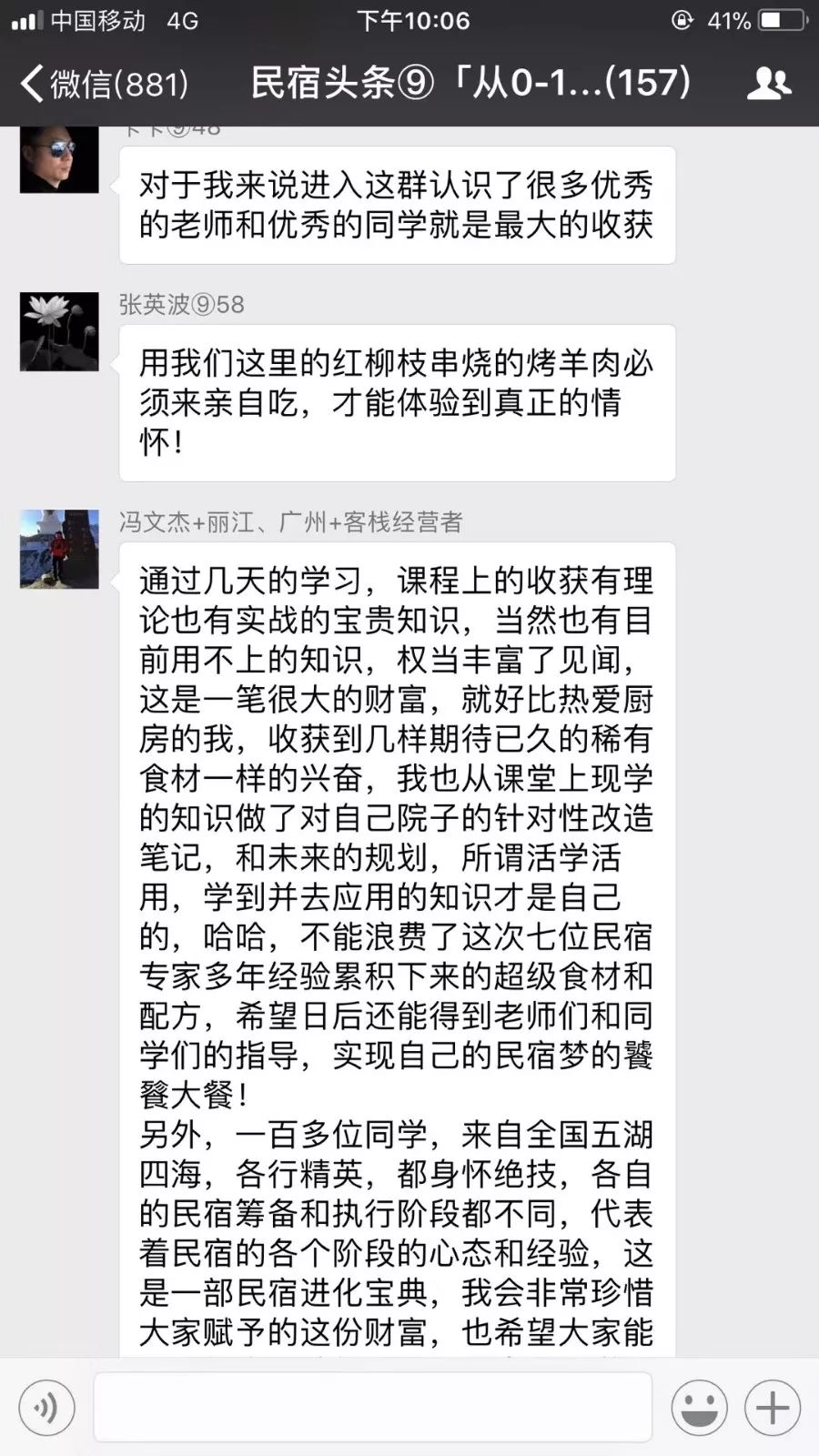 针对这些情况,民宿头条特别开办【从0-1开民宿】线上课程,到现在已成功开办17期课程了。开班以来,已成功帮2000多位从业者答疑解惑,落地民宿梦。看着同学们发自肺腑的总结,有点感动,能帮到想开民宿的同学少走弯路就是我们的价值。