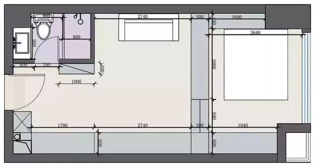 从户型图上看,玄关、厨房、卫生间、客厅、卧室基本的功能一样都不少,全部集中在这个仅有35平米的空间里面,设计师将空间利用到极致,看似很小,实际却感受不到它的拥挤,这就是巧妙利用空间的魅力所在。