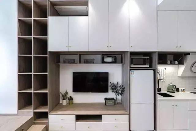 今天给大家分享一套面积只有35平米的小户型单身公寓,空间不大,但是通过设计师合理布局和搭配,使整个房子居住起来没有一丝紧凑感,看起来舒适又宽敞,感觉装得比大房子还好看。特别是收纳方面做得相当好,储物柜从进门厨房开始就一直延伸到客厅和卧室,储物性超强,还有卧室的设计也是绝了,地面就做了个小抬高,做成榻榻米地台床,既能睡觉休息,又能当休闲区,还带隐藏式收纳,你说实用不实用,一起看看就知道了。