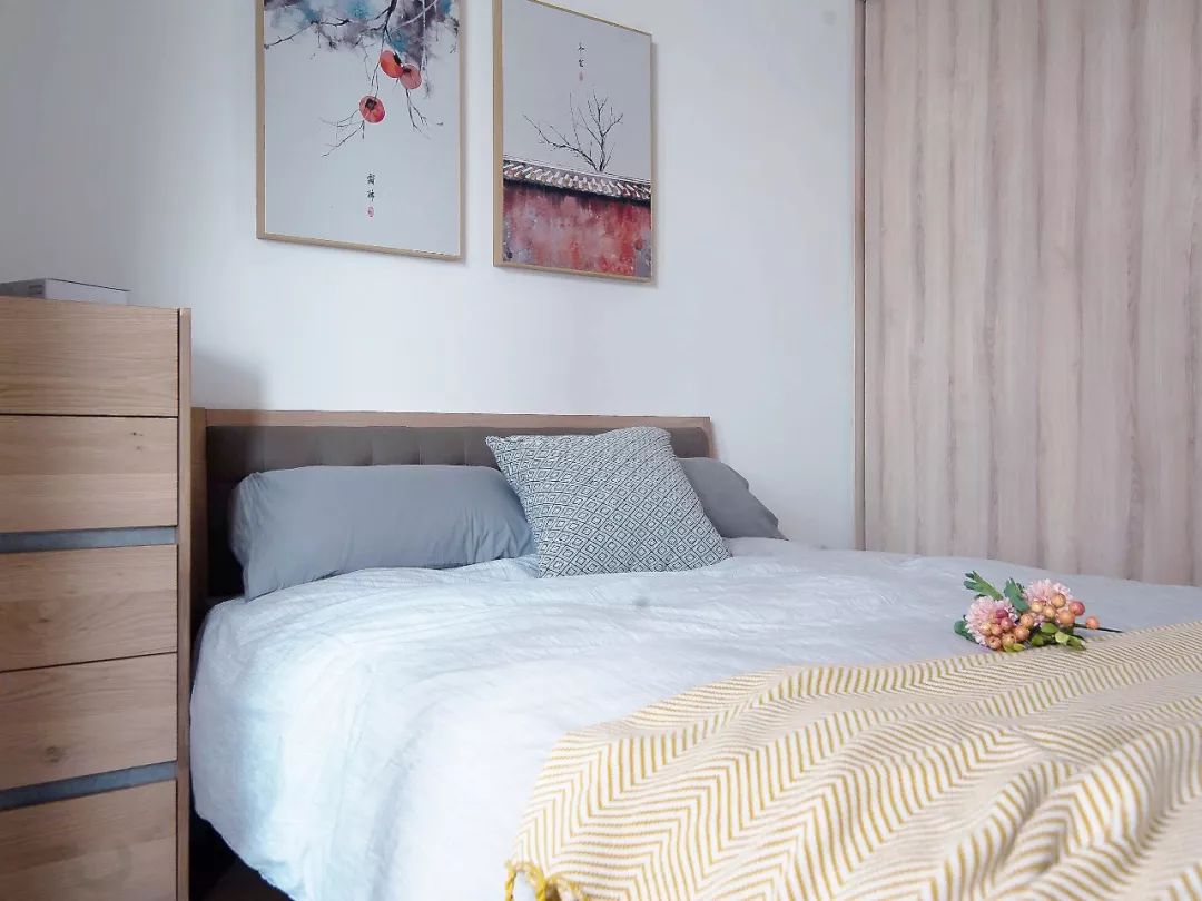 ▲卧室同样是简单舒适的空间基础,木质感的家具搭配中性色的家具,并在细节加入鲜艳活力的元素,带来的是一种独特优雅的气质。