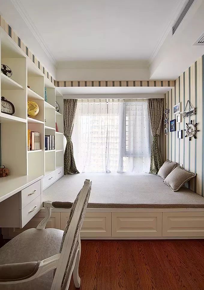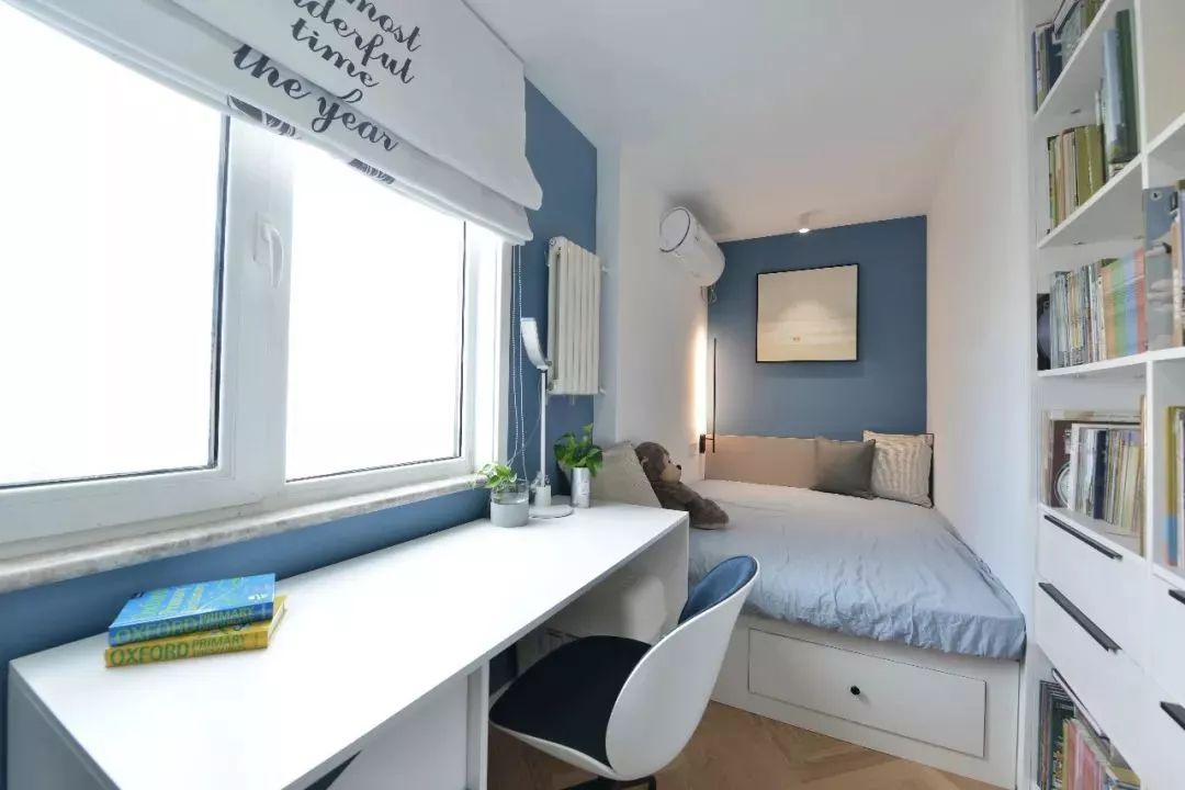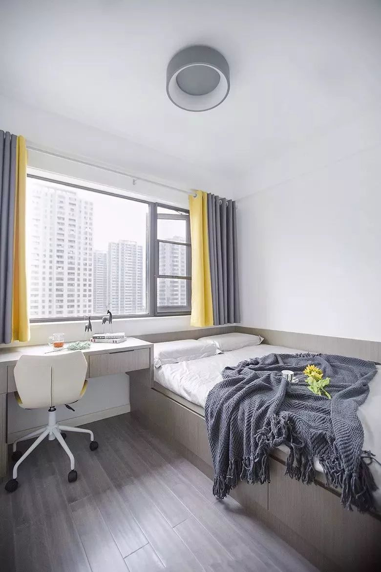 6、开门对着书桌位置,榻榻米床靠窗侧做满,让小小的空间也更加实用。